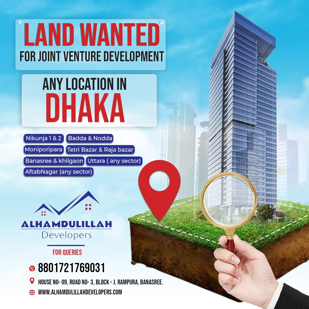 Land wanted for Alhamdulillah Developers at any prime location of Dhaka city.